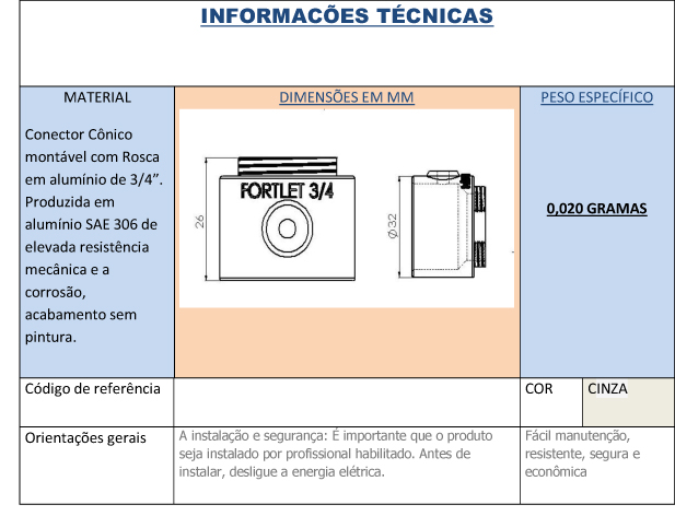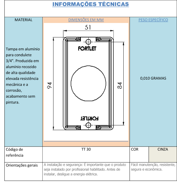 | Tampa Cega | Caixa de Conduletes | Cônico 3/4 |